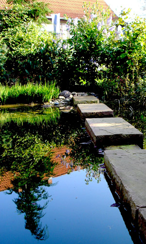 Unauffällig getrennt in einen Badebereich und eine Regenerationszone. Ein Stück Natur, das sich selbst reinigt. Schöner und pflegeleichter als jeder Pool.
